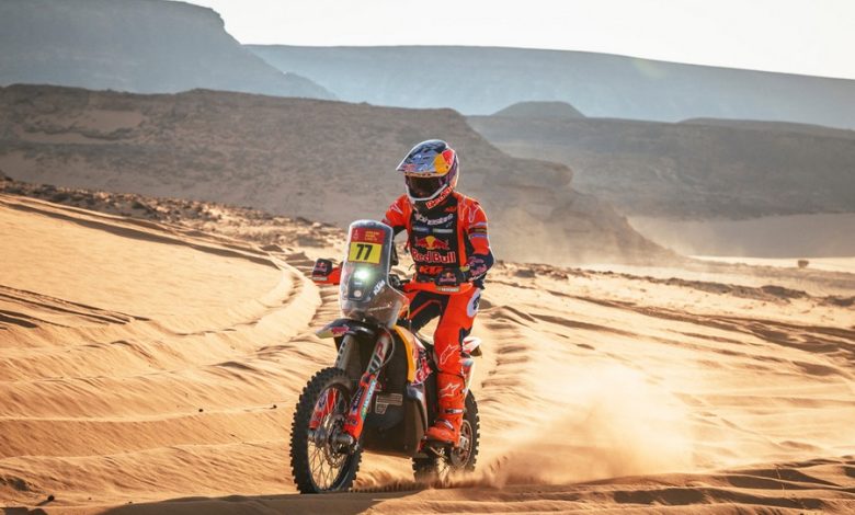 La catégorie Moto du Dakar 2026 a vécu deux journées de haute intensité lors des étapes 7 et 8, toutes deux disputées autour de Wadi Ad Dawasir. Un double rendez-vous qui a consacré la domination de KTM et propulsé Luciano Benavides au sommet de la hiérarchie. Au lendemain de l’unique journée de repos, la septième étape, longue de 459 km entre Riyadh et Wadi Ad Dawasir, a marqué le retour en force du pilote argentin. Déjà vainqueur de la cinquième spéciale, Benavides a signé un nouveau succès autoritaire, offrant à KTM une nouvelle démonstration collective avec la deuxième place d’Edgar Canet. Adrien Van Beveren a complété le podium à dix secondes du jeune Espagnol, devenant le premier pilote non-KTM classé.