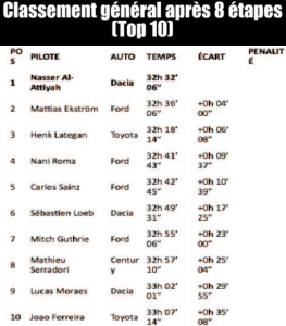 Les étapes 7 et 8 ont été marquées par un incroyable enchaînement de coups du sort pour Henk Lategan, tour à tour dominateur… puis cruellement privé de victoire. Lors de la septième étape, disputée entre Riyadh et Wadi Ad Dawasir, le Sud-Africain de Toyota semblait se diriger vers un deuxième succès d’étape après celui décroché lors de la quatrième spéciale. Auteur d’une prestation autoritaire, Lategan voyait même s’ouvrir la perspective de prendre la tête du classement général. Mais à quelques kilomètres de l’arrivée, un problème technique est venu anéantir ses espoirs. Relégué à la 13e place, il a laissé filer une victoire promise, offrant sur un plateau le succès à Mattias Ekström. Le Suédois de Ford en a profité pour frapper un grand coup, tandis que Nasser Al-Attiyah, 11e de l’étape, conservait la tête du général au volant de la Dacia Sandrider.